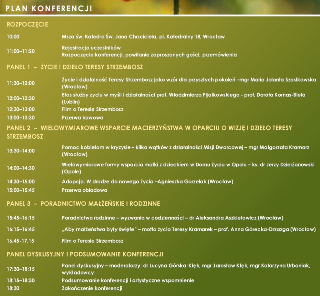 Serdecznie zapraszamy na konferencję poświęconą Teresie Strzembosz – kobiecie, której życie choć krótkie, wypełnione było niezwykłym zaangażowaniem na rzecz rodziny, obrony życia i wspólnoty.