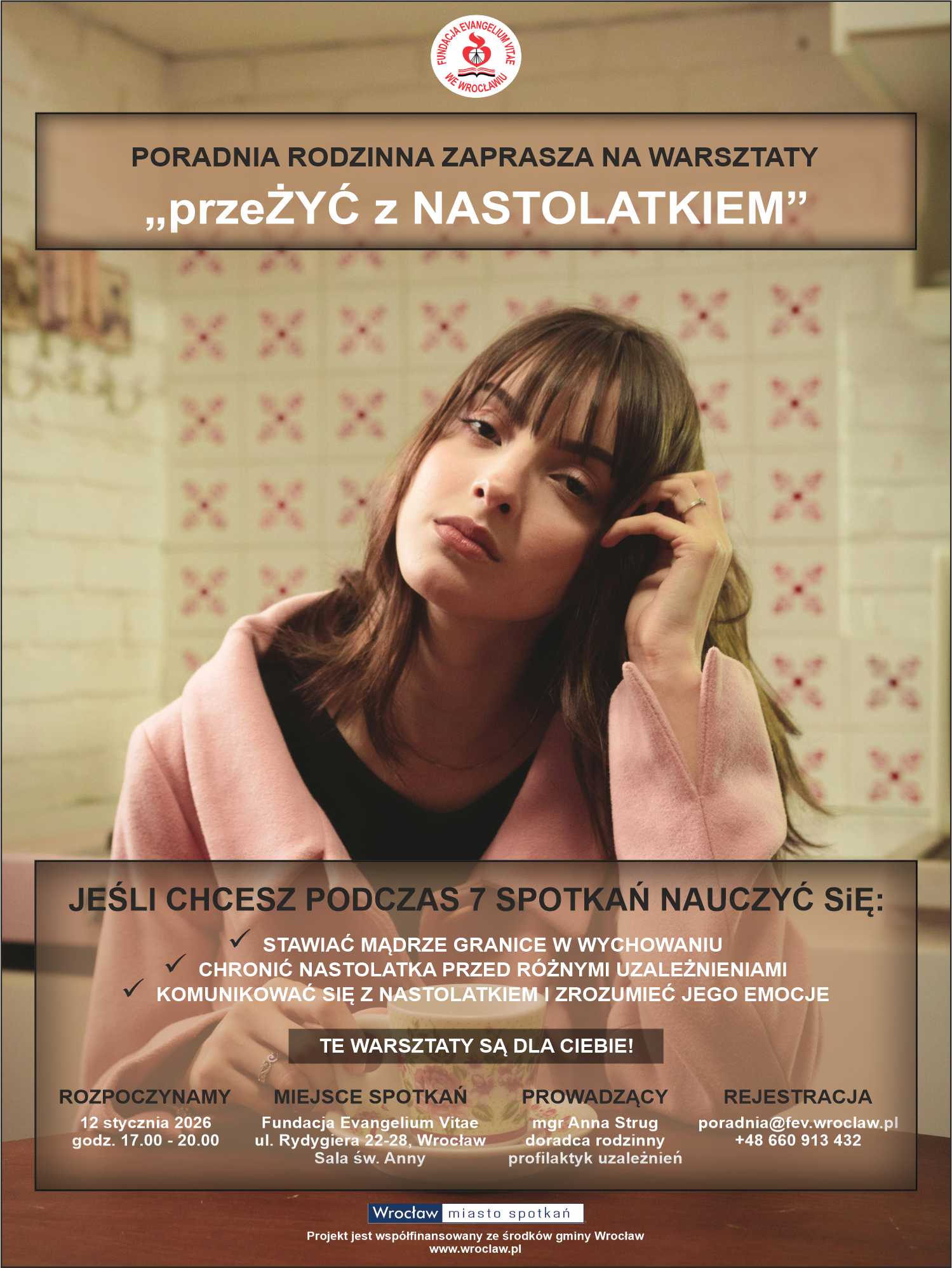 Zapraszamy na kolejne warsztaty pt.: „PrzeŻYĆ z nastolatkiem” od 12.01.2026 r., które odbędą się w godz. 17.00 – 20.00.