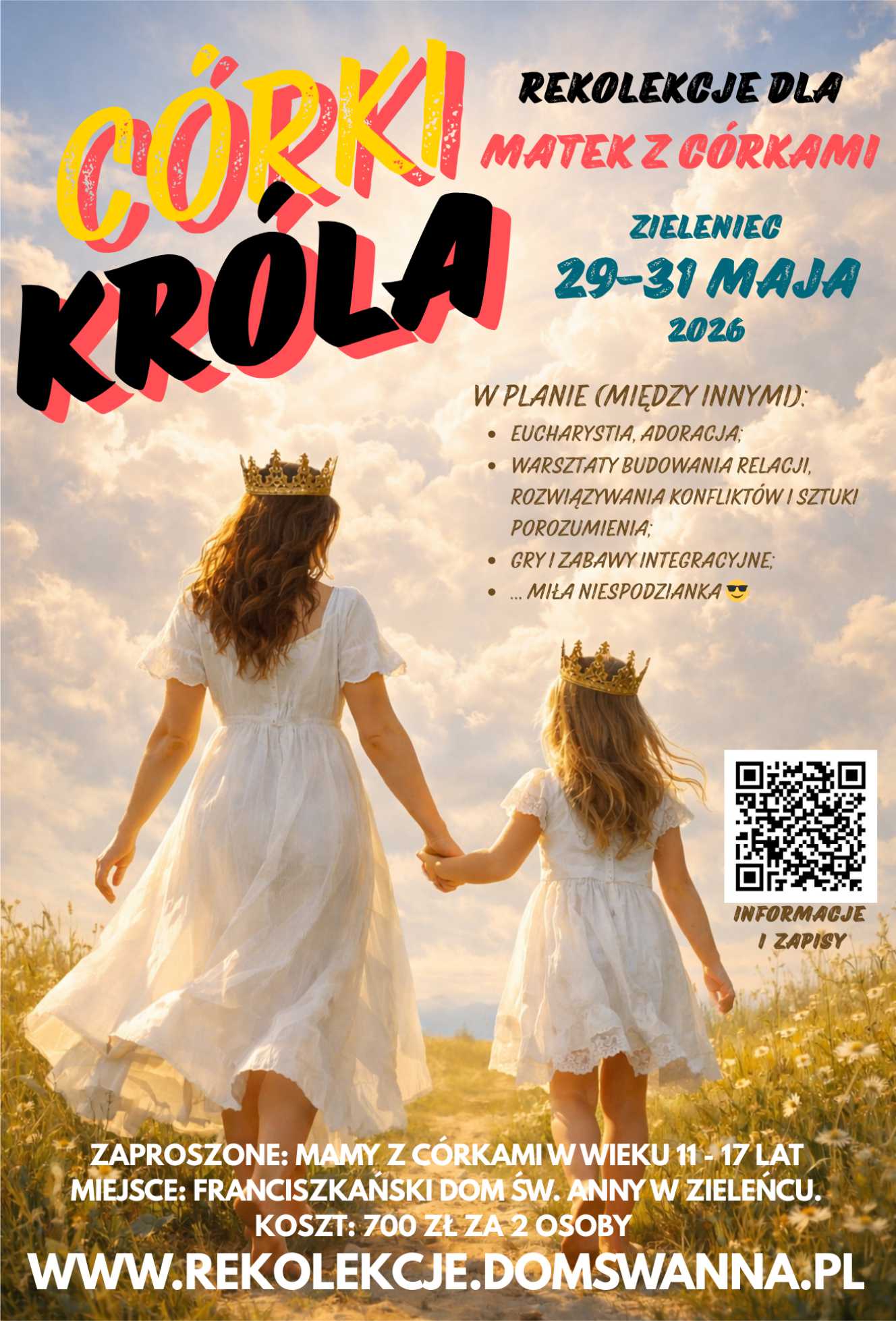 Zapraszam na wyjątkowe rekolekcje z warsztatami dla mam z córkami. Odbędą się one 29-31.05.2026 w klasztorze franciszkańskim w Zieleńcu.